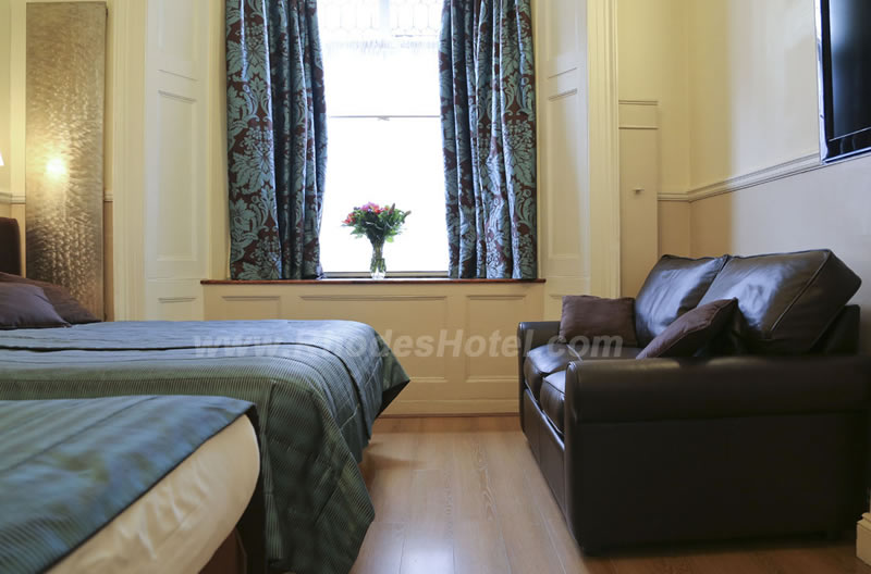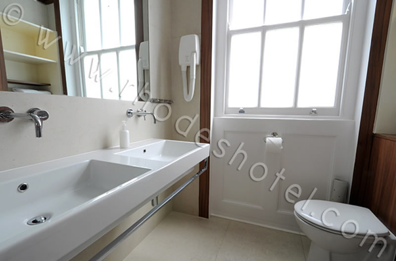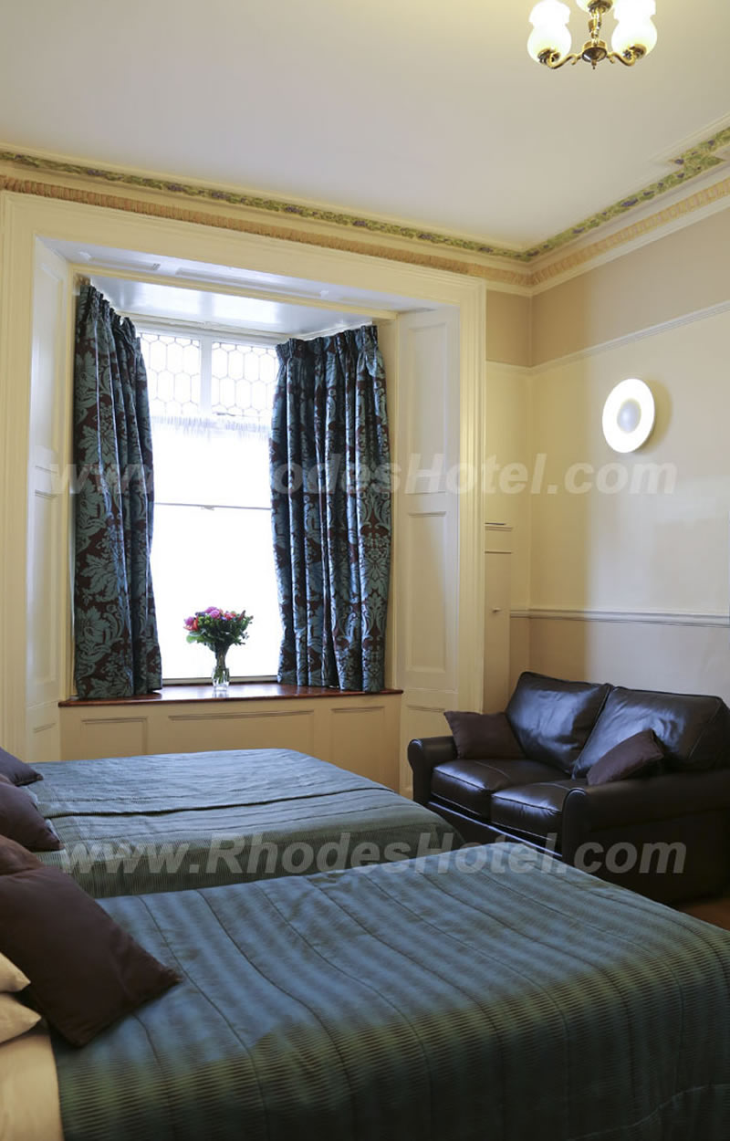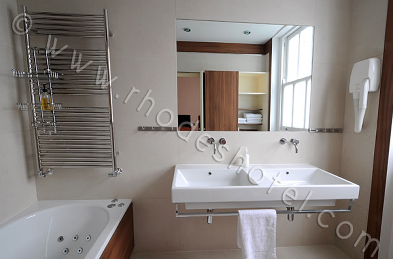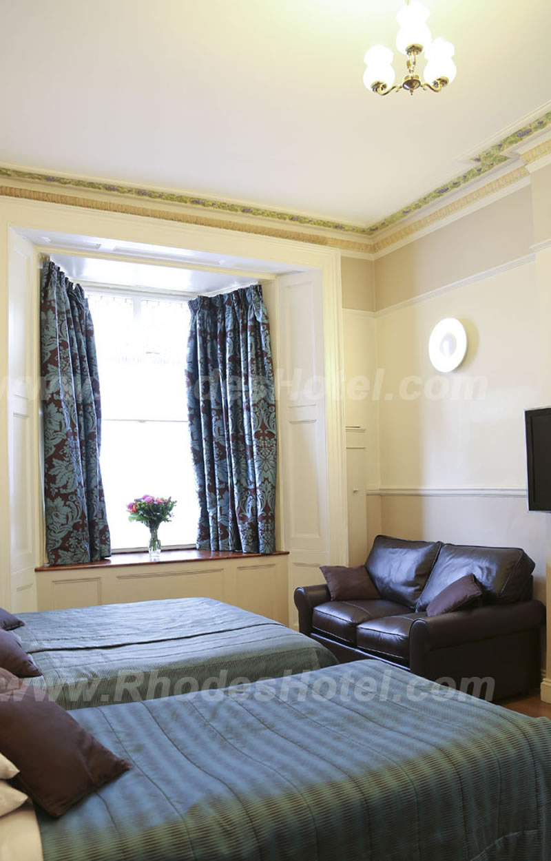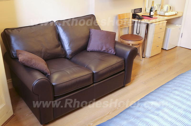 Rhodes Hotel has a wide range of rooms from compact size to larger, for the individual traveler to families of up to 6 people in a room. All rooms are en suite with shower room or the Deluxe rooms have a jacuzzi bathtub. Every room has a window, flat screen tv, small writing desk, tea & coffee making facilities and an empty minibar fridge for you to keep your personal snacks and drinks cool.