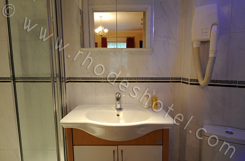 Rhodes Hotel has a wide range of rooms from compact size to larger, for the individual traveler to families of up to 6 people in a room. All rooms are en suite with shower room or the Deluxe rooms have a jacuzzi bathtub. Every room has a window, flat screen tv, small writing desk, tea & coffee making facilities and an empty minibar fridge for you to keep your personal snacks and drinks cool.