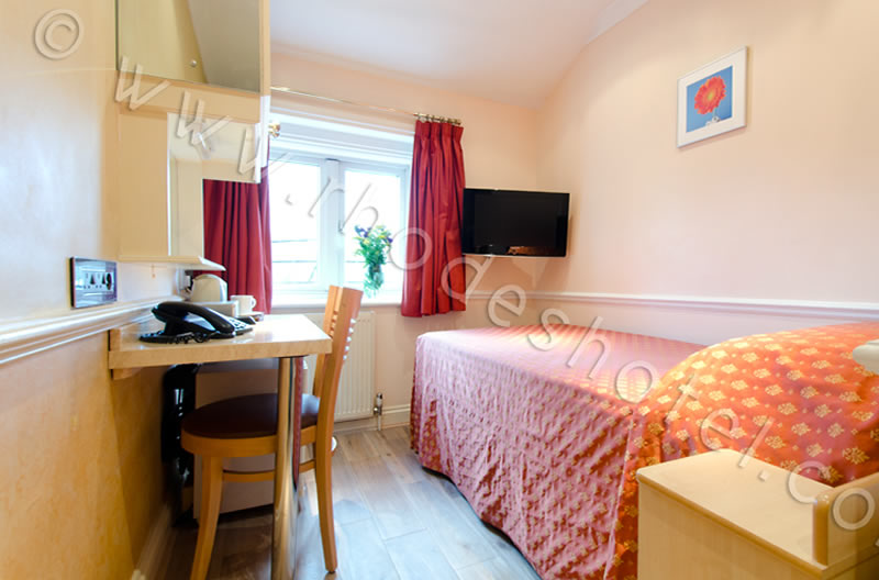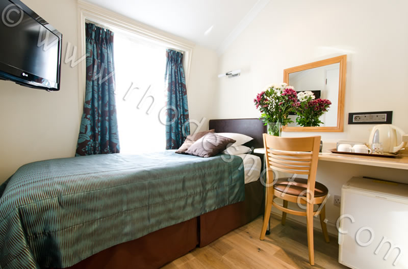 Description: Our Standard Single Rooms are contemporary, compact and cosy. They are comfortably furnished with everything you need: one standard Single bed, a writing desk, modern shower bathroom, hanging space for clothes, tea/coffee making facilities, mini-fridge, direct dial telephone, flat screen TV, Freeview satellite channels, radiator central heating, air conditioning, hair dryer, UK & EU sockets and high speed WI-FI broadband internet. All rooms have wooden floors.